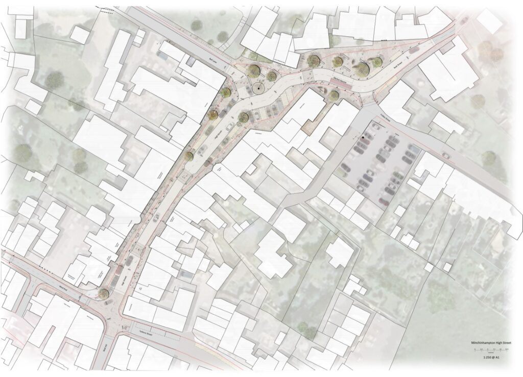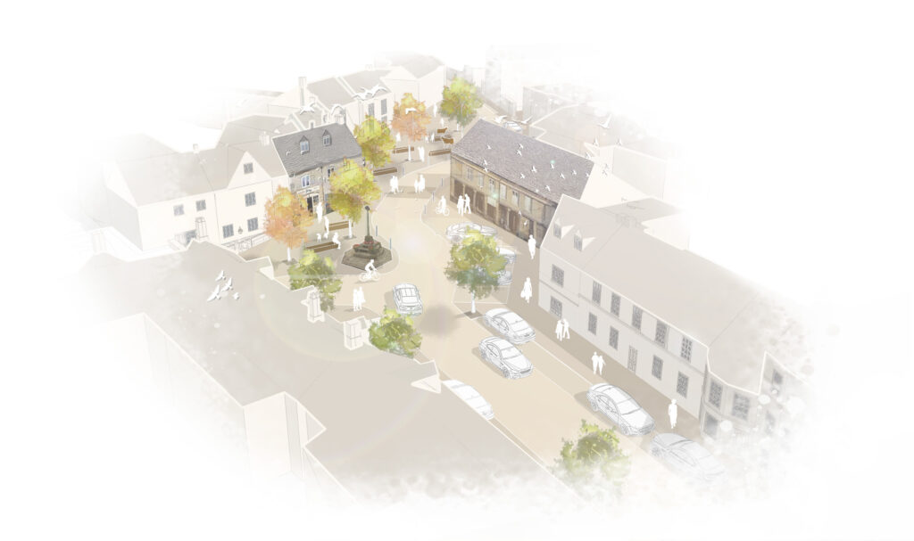 ‘To revitalise Minchinhampton Town Centre to be a sustainable, inclusive and people-centric environment, creating an accessible public realm where pedestrians have priority over vehicles. Befitting of the heritage of the place and to better serve the community’